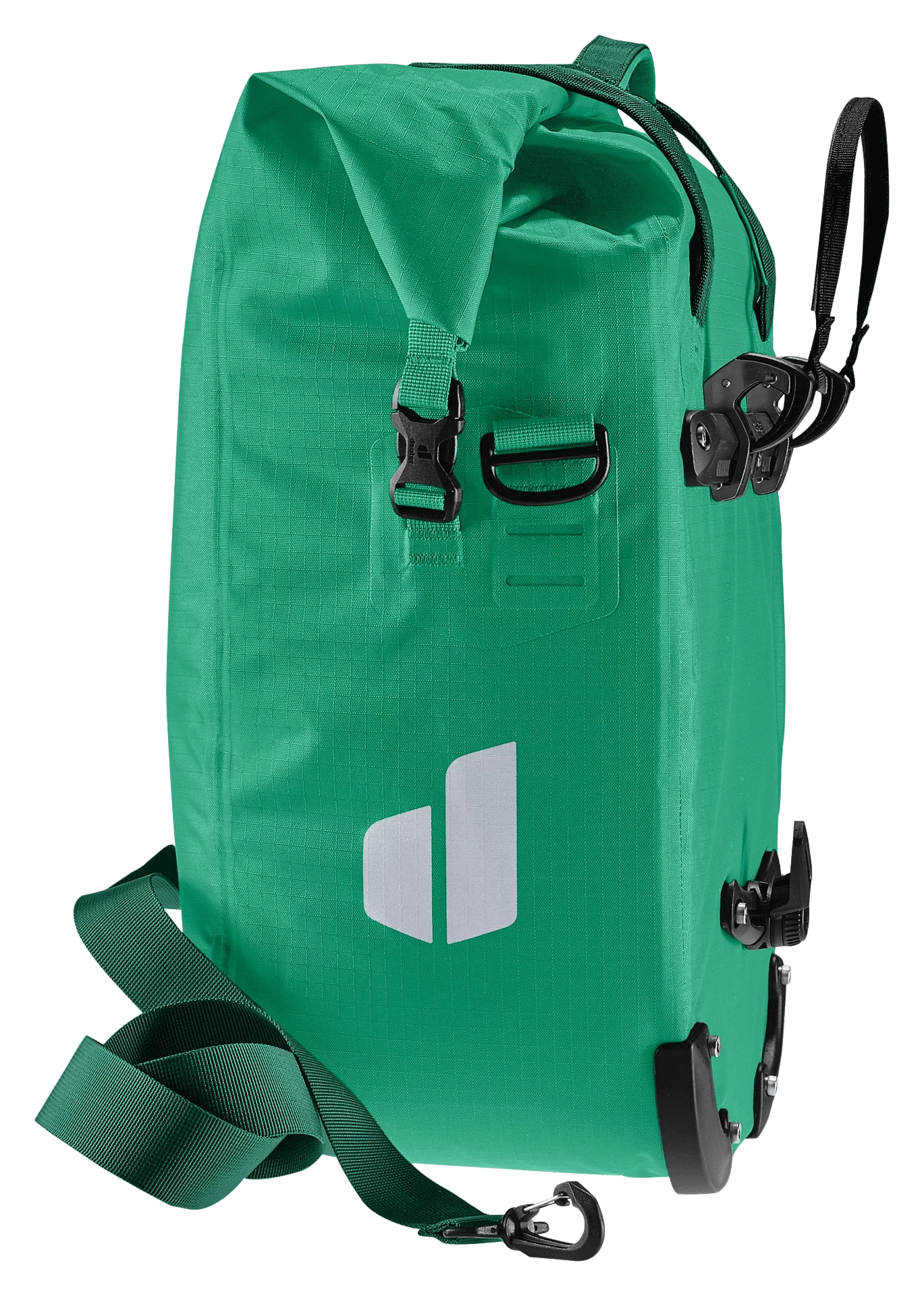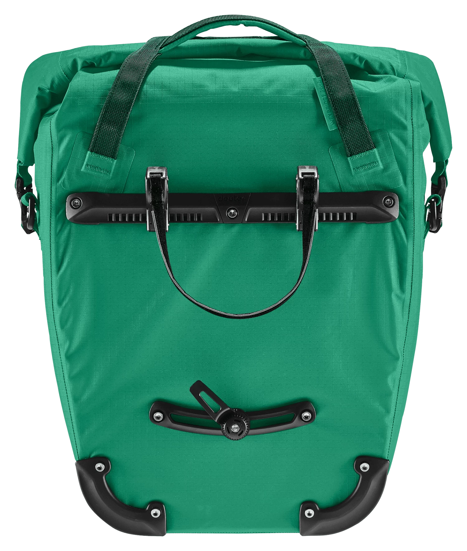 Die wasserdichte Fahrradtasche bewahrt Ausrüstung, Reisegepäck oder Freizeitutensilien sicher vor dem Eindringen der Nässe bei Regen oder Spritzwasser. Dank des Rolltopverschlusses, der sich mittig oder seitlich fixieren lässt, kann das Volumen des leichten Raumwunders um zusätzliche 5 Liter Stauraum erweitert werden.
