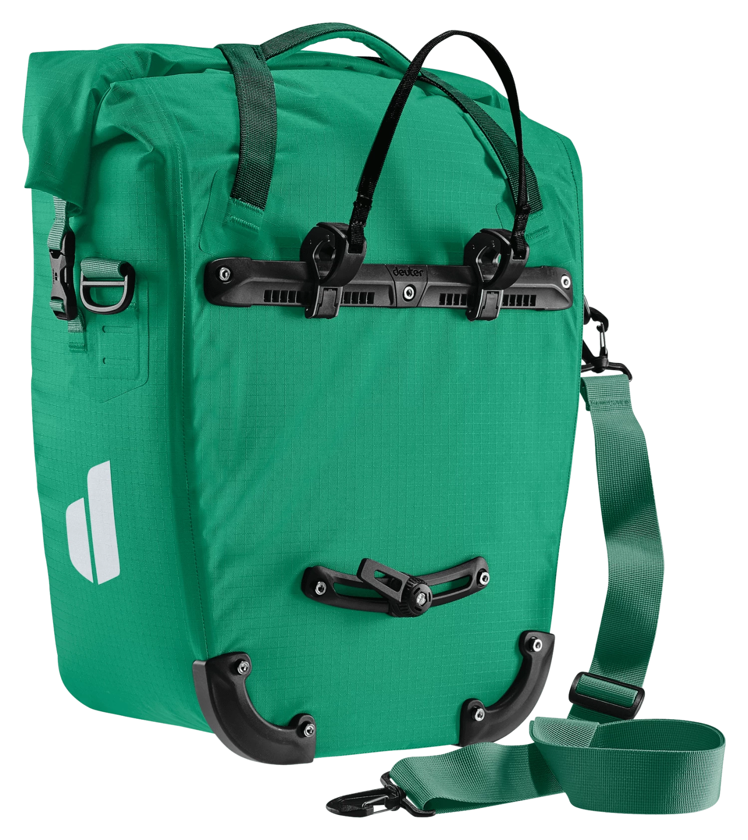 Maximale Bewegungsfreiheit bietet die neu entwickelte BagFix-Halterung. Zwei Führungsschienen und zwei Haken sorgen während den langen Fahrten für zuverlässigen Halt der Fahrradtasche. So liegt die Last zu 100% auf dem Hinterrad und nicht auf dem Rücken. Im Stand kann die Tasche mit nur einem Handgriff vom Gepäckträger abgenommen und als Schultertasche verwendet werden.