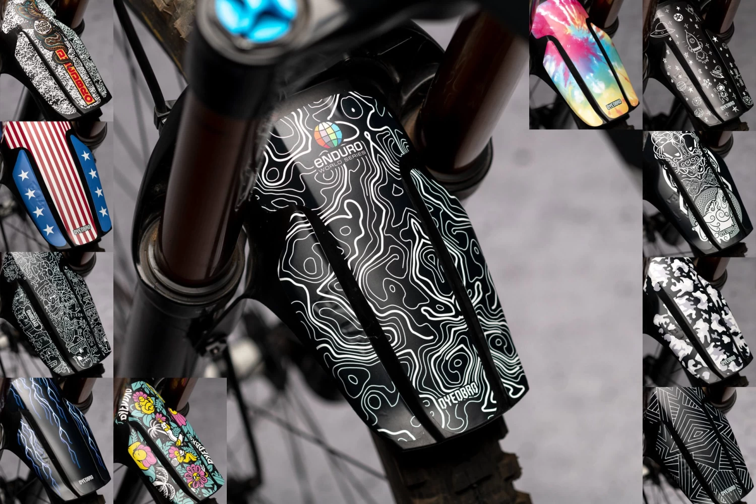 Dyedbro bietet seine 11 beliebtesten Foliendesigns für dein Bike jetzt auch als Decals für den FOX Fender an.