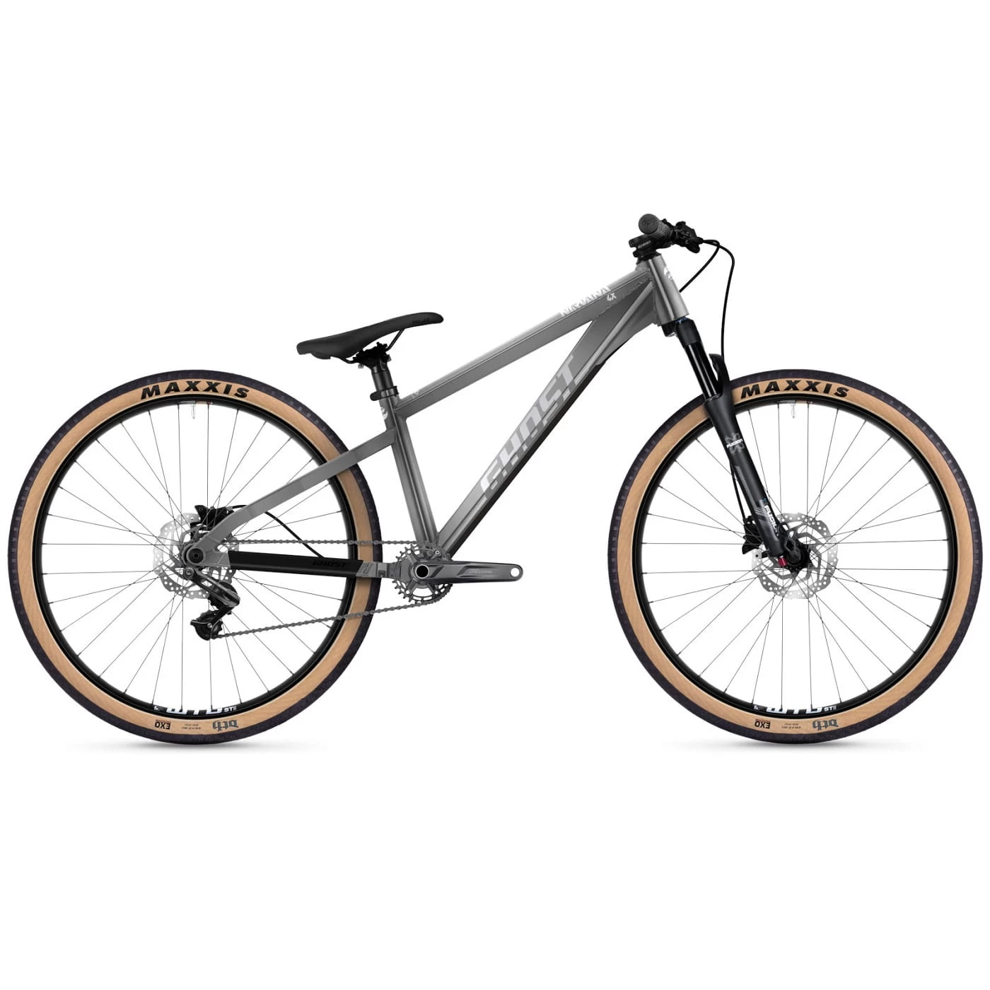Du bist unterwegs auf Pumptracks und Dirt Jumps? Machst auch mal einen Ausflug in den Skatepark? Dann ist das Nirvana 4X dein Bike! Dank der Rahmengeometrie lässt sich das Bike einfach durch den Anlieger pushen und liegt gut in der Luft – und die 100mm-Federgabel gibt dir Sicherheit, wenn die Landung mal nicht ganz gelungen ist. Gut rollende Reifen sowie Scheibenbremsen vorne und hinten sorgen dafür machen das Nirvana 4X zu einem Bike, das optimal abgestimmt ist für den Einsatz von Dirt Park bis Fourcross.