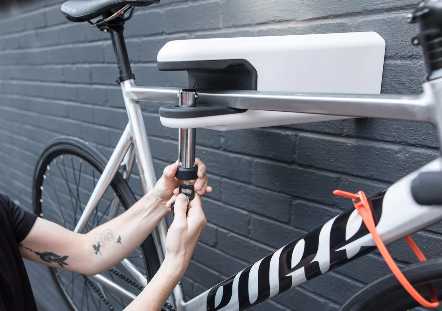 Neu eingetroffen ist das Airlok von Hiplok eine elegante und höchst sichere Lösung sein Fahrrad an der Wand anzubringen. Das Design kommt in Dreieckform,mit einer sicheren Befestigungsmöglichkeit, einem Rahmen aus gehärtetem Stahl und einem abschließbaren Sicherungsbolzen. Schutz vor Kratzern am Rahmen und zusätzliche Stabilität bringt der gummierte Belag. Das Airlok ist ideal für die Aufbewahrung und Sicherung des Fahrrads in Garage oder Keller.