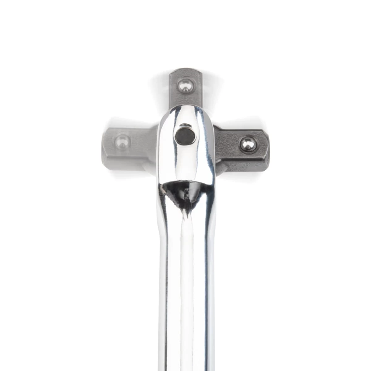 Der SWB-15 ist ein geschmiedeter Stahl-Gelenkgriff mit einer 3/8“ Vierkant-Aufnahme, die um 180º schwenkbar ist. Ausgestattet mit einem langen, gerändelten Griff der äußerst nützlich ist wenn zusätzliche Hebelkraft benötigt wird, um festsitzende Schrauben, Muttern oder Tretlager zu lösen.