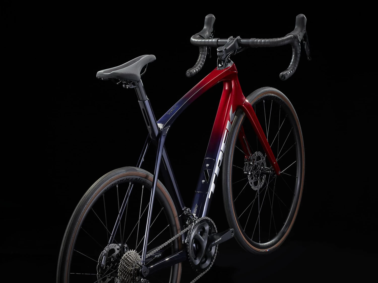 Das Domane SL 5 ist vielseitig und schnell und überzeugt mit einem geschmeidigen Fahrverhalten. Der Rahmen aus OCLV Carbon kommt mit sowohl vorderem als auch hinterem IsoSpeed, um Unebenheiten auf der Straße glattzubügeln und Ermüdung vorzubeugen, damit du auf langen Abenteuern länger kraftvoller in die Pedale treten kannst. Es ist mit einem zuverlässigen Shimano 105-Antrieb bestückt, punktet mit allwettertauglichen Scheibenbremsen und ermöglicht die Unterbringung von notwendigen Utensilien im integrierten, leicht zugänglichen Staufach.