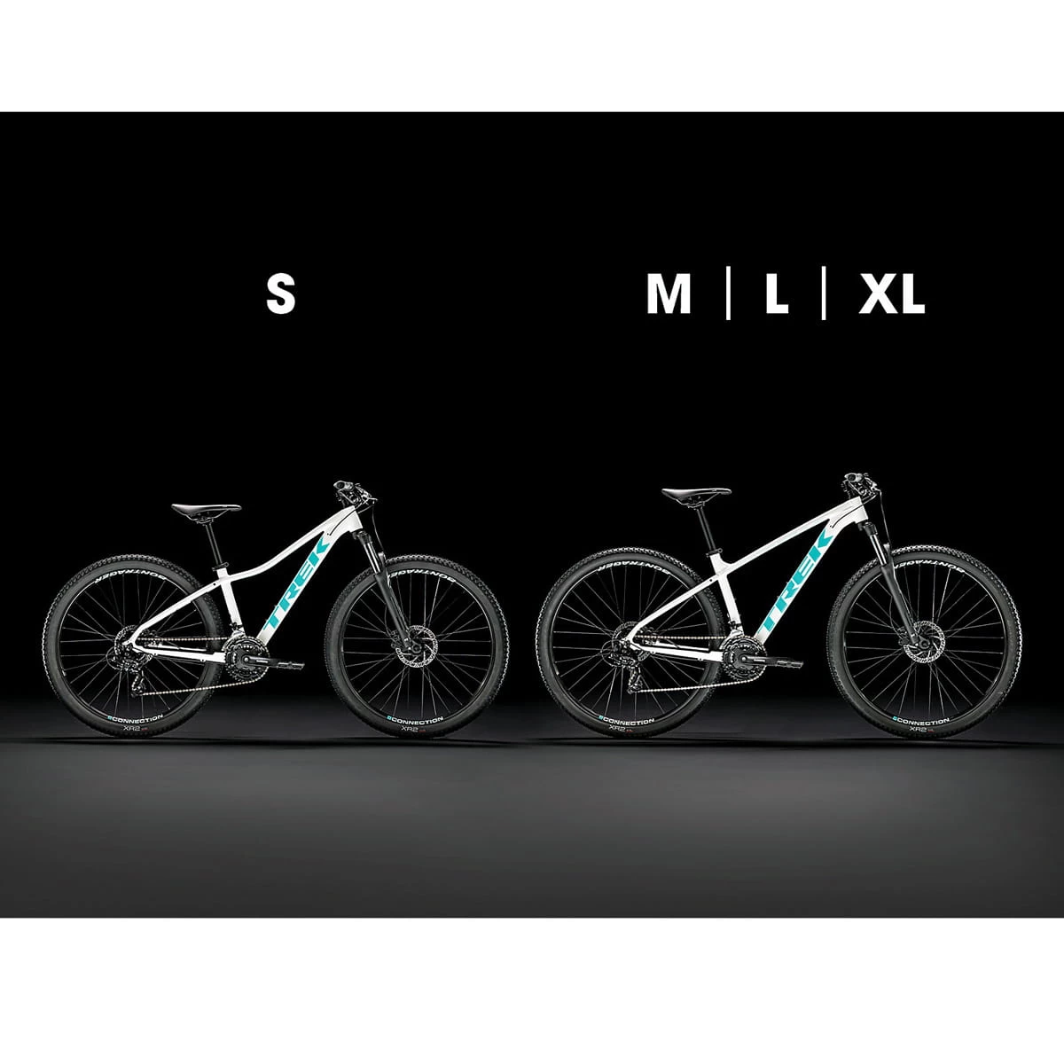 Gabel: SR Suntour XCT 30, Spiralfeder, verstellbare Federvorspannung, hydraulischer Lockout, 42 mm Vorbiegung für 27,5“-Laufrad, 100-mm-Schnellspannachse, 100 mm Federweg (XS/S)